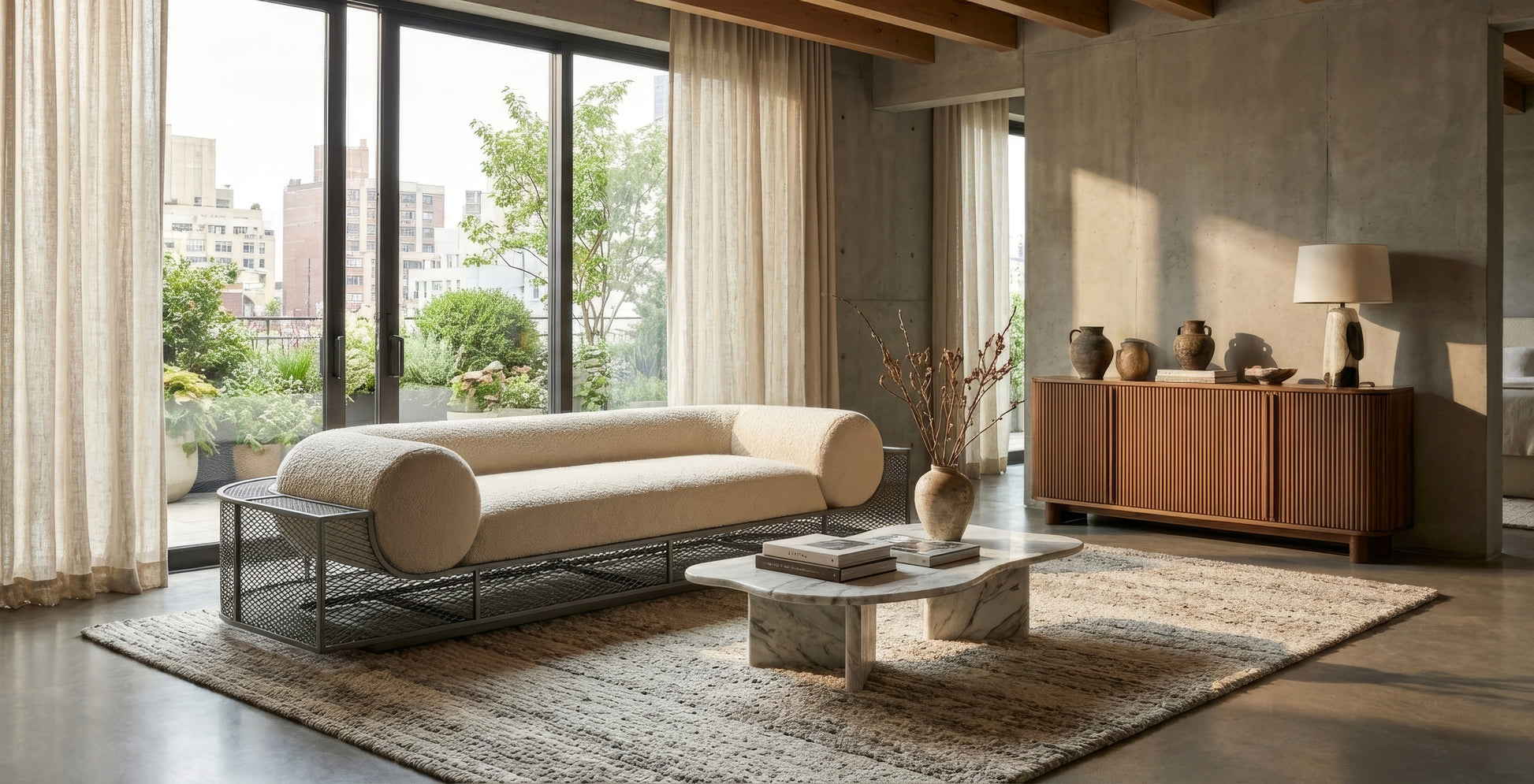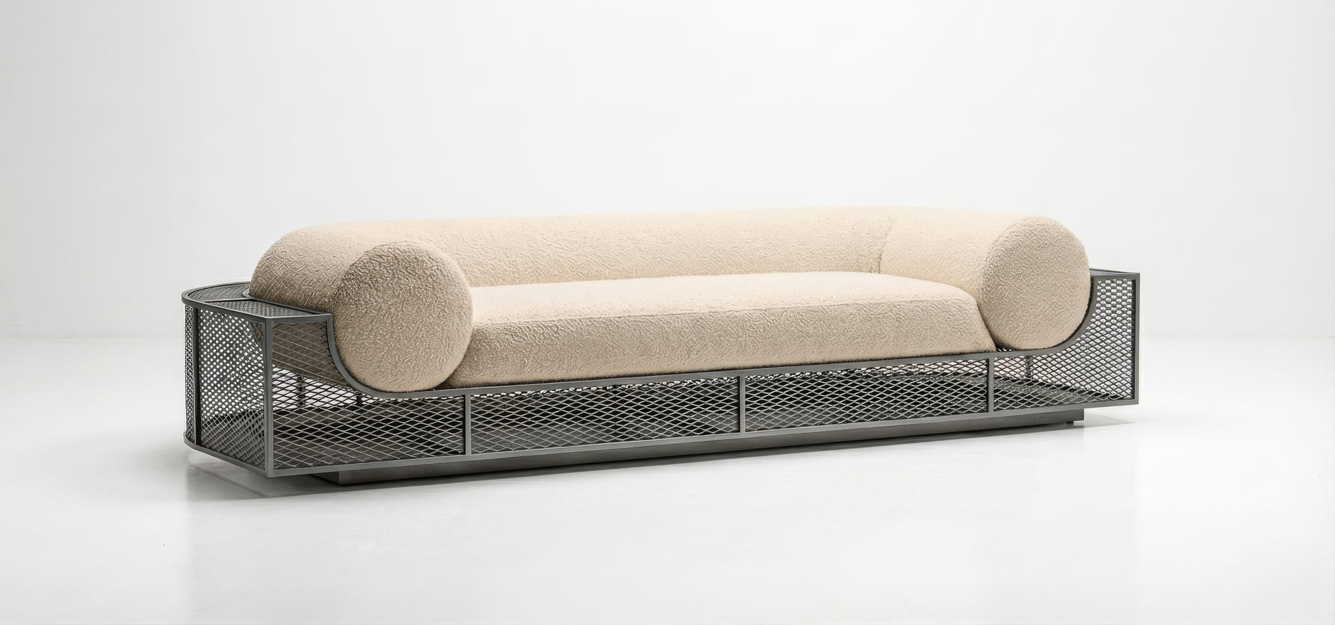 This sofa is a contemporary design piece that combines comfort with a strong sculptural identity. Its enveloping upholstered volumes are framed by a metal structure that adds lightness and architectural contrast. Designed to offer both visual impact and relaxed comfort, this sofa stands out for its balanced proportions, material dialogue, and timeless character, making it a refined centerpiece for modern interiors.